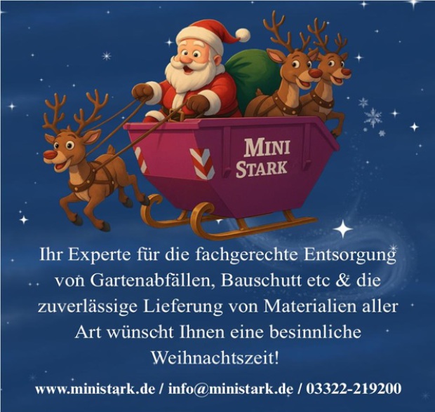 Von 22.12.2025 bis einschließlich 02.01.2026 ist unser Betrieb Geschlossen